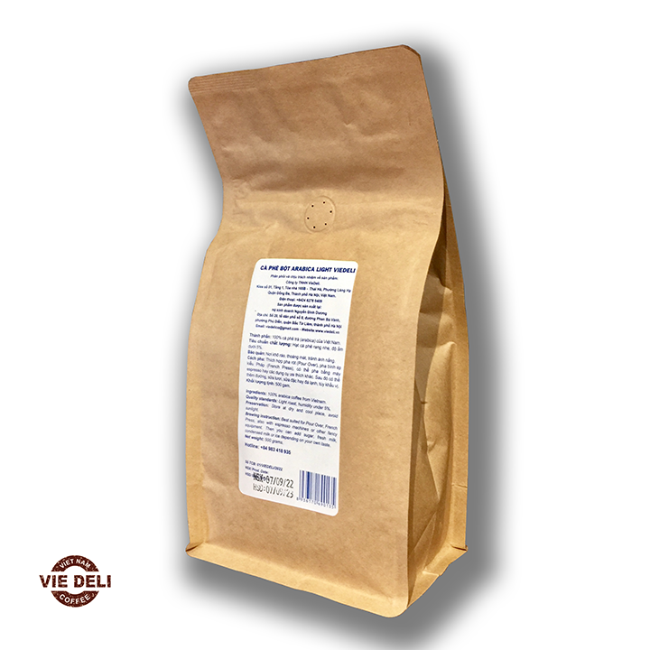 – 100% Cà phê bột Arabica Light Viedeli không chất bảo quản, không hương vị liệu hóa chất, không màu thực phẩm, không phối trộn bơ, bắp, đậu và các phụ phẩm khác.